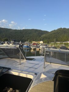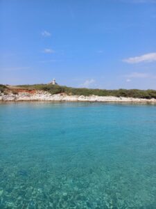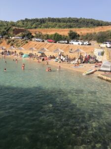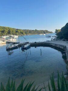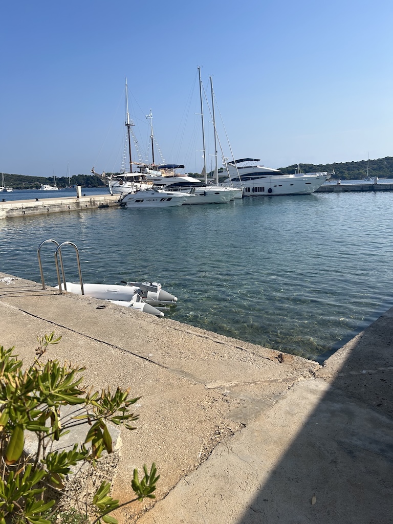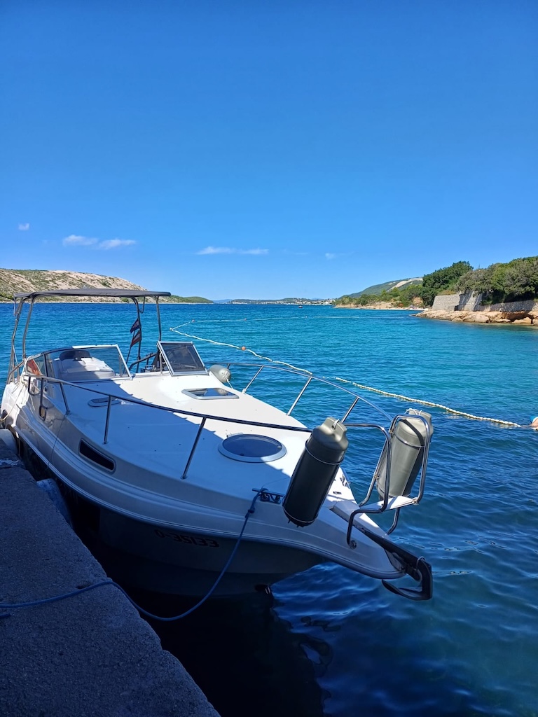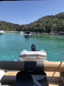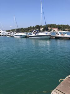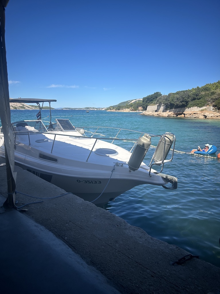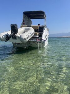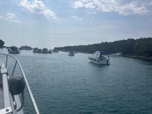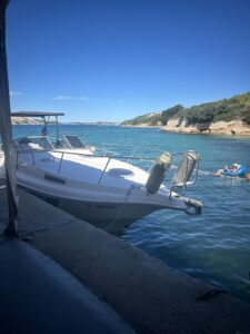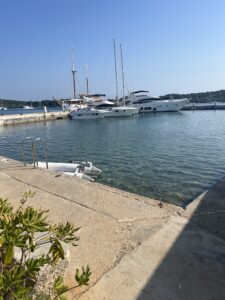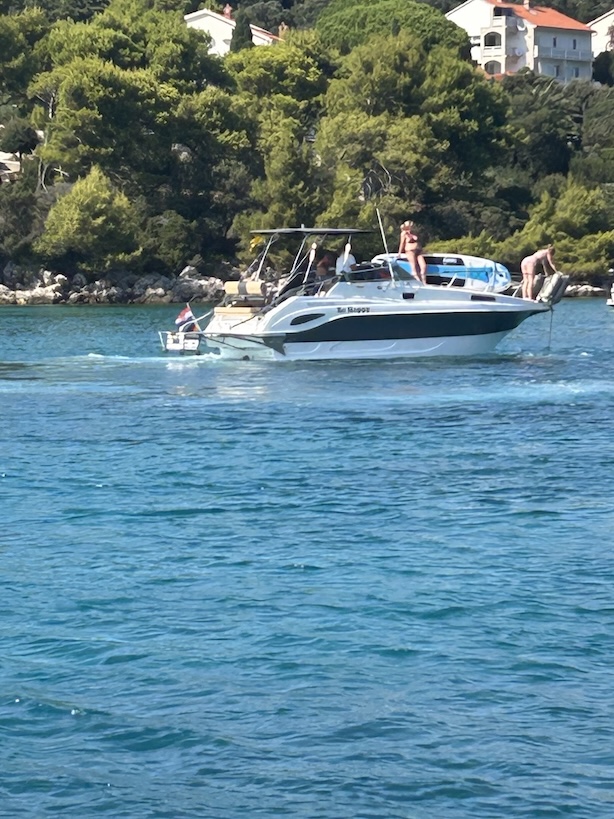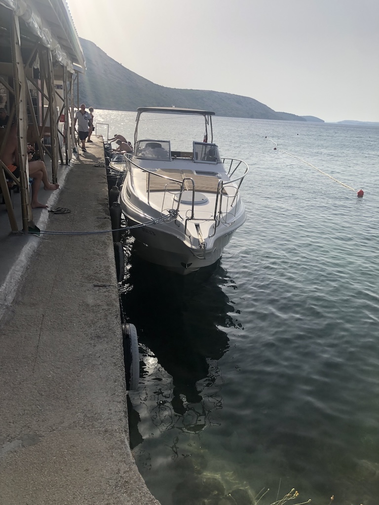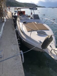 Im Juli sind wir auf die Insel Rab gefahren, das Boot wie immer am Hänger mit transportiert. Dort haben wir den Fähranleger Josko besucht auf Cevapcici. Unsere Lieblingsbucht ist die Schinkenbucht, hier fahren wir schon seit vielen Jahren hin, dort befindet sich auch ein Restaurant. Dort konnten wir super mit dem dazugehörigen Schlauchboot hinfahren und es hat hier gute Dienste geleistet. Am Boot gekocht wurde auch fleißig, mit unserem Gaskocher ist man unabhängig und kann jederzeit eine Kleinigkeit zubereiten. Die zwei Kühlschränke (innen und außen) sind super, ebenso wie die neue Frischwasseranzeige.
