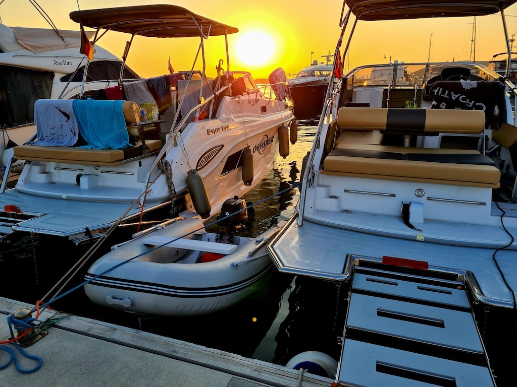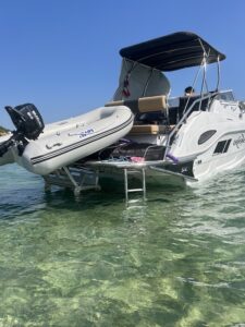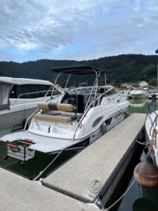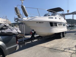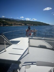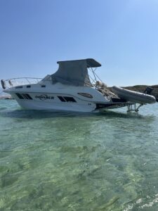 Die Sonnensegel haben uns auch bei großer Hitze noch Schatten gespendet. Bei optimaler Fahrweise hatten wir bis zu 20 Motorstunden/Reichweite bis zum ersten Tankstopp, was für diese Bootsgröße einen hervorragenden Treibstoffverbrauch ergibt. Leider hatten wir in der ACI Marina in Supetarska Draga einen großen Sturmschaden. Die gesamte Badeplattform musste gewechselt werden, was die Fa. Öchsner zu unserer vollsten Zufriedenheit repariert hat (inkl. Schadensabwicklung mit unserer Kasko Versicherung).