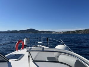 Nun konnten wir die erste Erfahrung mit dem neuen Boot auf dem Mittelmeer machen und haben auf mehreren Tages Touren die Küste von Agay bis Cavalair-sur-Mer erkundet. In gemäßigter Gleitfahrt sind auch Wellen mit 1-1,5 m kein Problem.