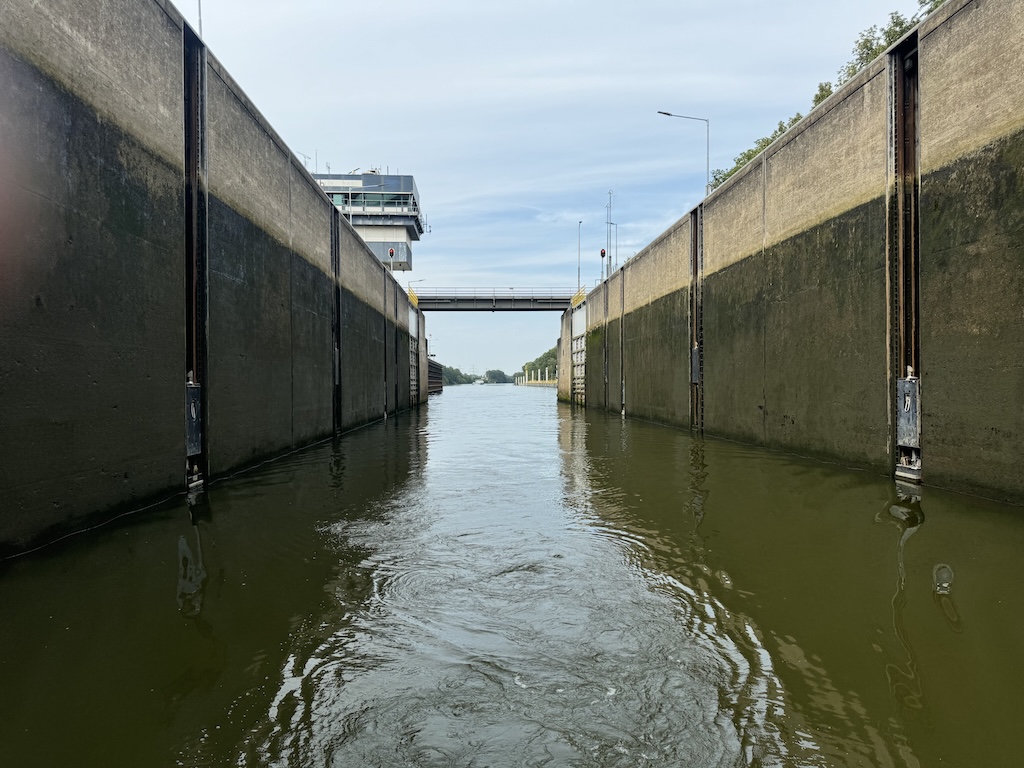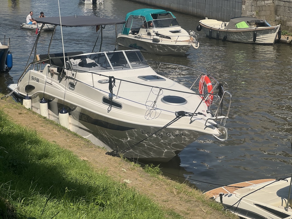 Das Einslippen am folgenden Wochenende klappte problemlos. Auch mit unserem neuen Anlegeplatz im Hafen hatten wir  richtig viel Glück – dieser Platz bietet Ruhe und eine perfekte Aussicht in die Natur. Die ersten Fahrten mit der SRX30 haben wir auf der Maas und den angrenzenden Maasplassen gemacht, um das Boot kennenzulernen. Dazu gehört in dieser Region auch das häufige Schleusen.